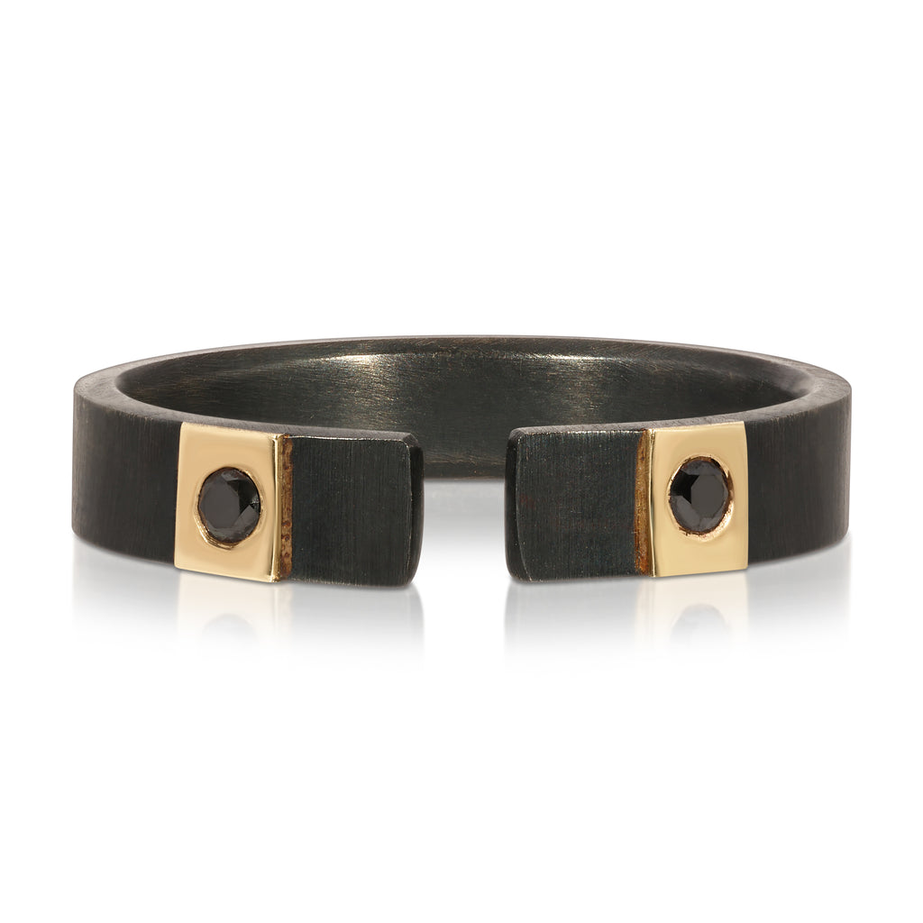 The Gold Lines Gap Ring will definitely stand out. Wear it solo or layer with different rings for the perfect stack. The bold combination of the oxidized black sterling silver with the warmth and durability of solid 14 Karat gold really makes this ring a show stopper.