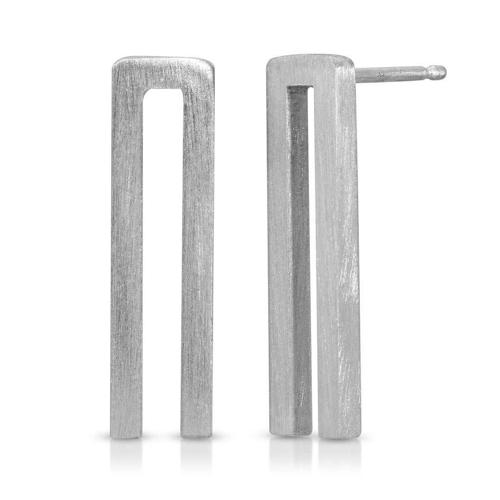 These earrings were inspired by an often seen architecture element, where 2 minimalist buildings exist as a unit, like the Twin Towers or the Brazilian National Congress. The two bars that are the front and center of the Twin Earrings create the sexiest little negative space.